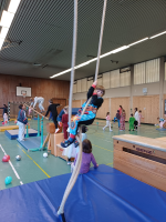 Wer aus seiner Gruppe "herauswächst" kann nahtlos in die nächste Gruppe wechseln. Hier bauen wir das Gelernte aus und nutzen die vielfältigen Bewegungsmöglichkeiten, die unsere große Halle bietet. Auch neue Mitglieder heißen wir natürlich herzlich willkommen.